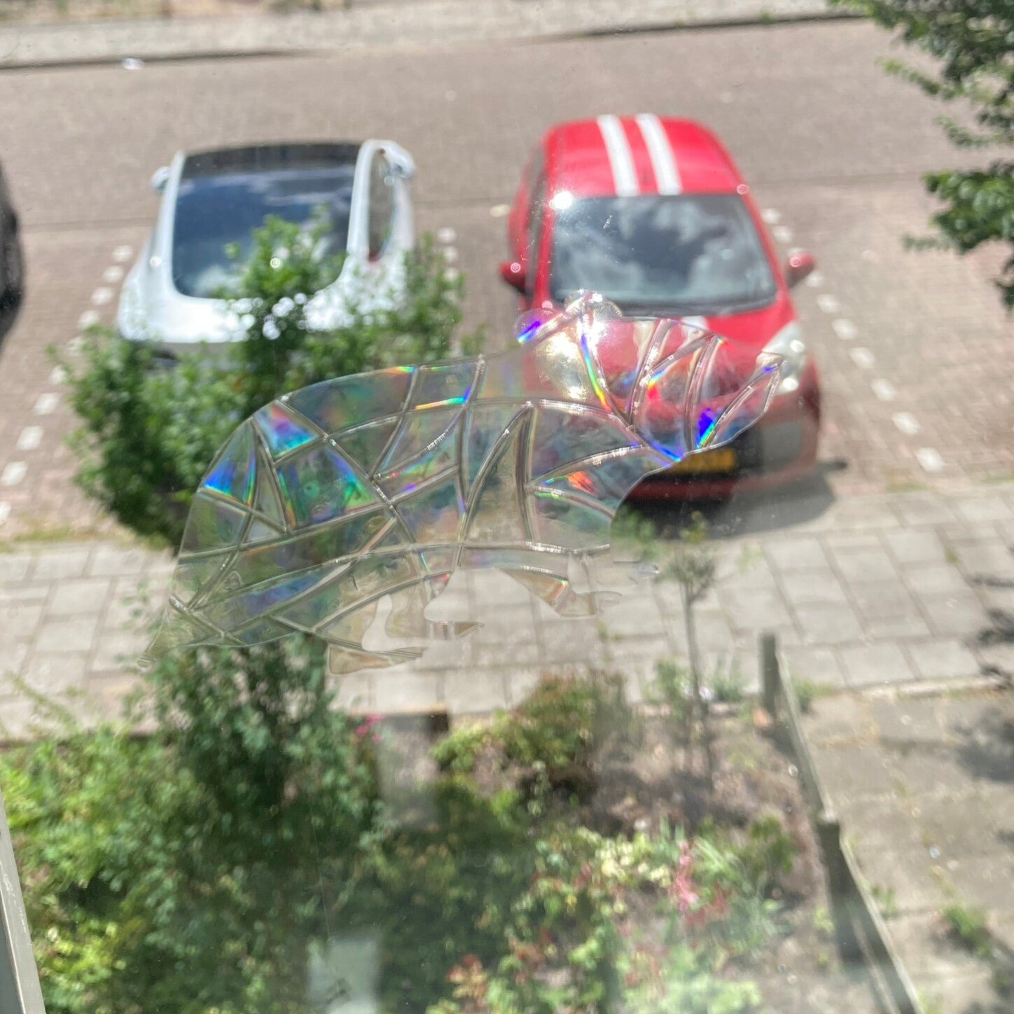 these window stickers are beautiful when the sun hits them.They are made with static window film, so they don't leave any residue and are easy to remove. The sticker is 10,1x5cm.
