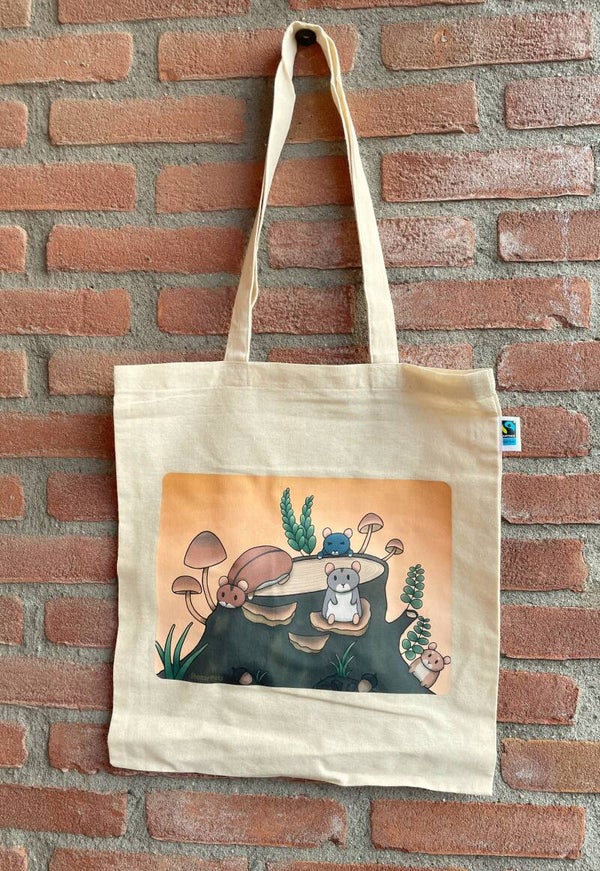 This cute hamster tote bag is perfect for autumn!Size is 37,5 x 41,5 cm without handles and the handles are 35 cm